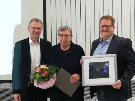 Für ihr langjähriges Engagement als Bezirksfechtwartin und ihre Arbeit im Ehrungsausschuss bekam Beatrice Frank die höchste Ehrung des Württembergischen Fechterbundes überreicht: den goldenen Säbel. Lehrwart Eberhard Trautwein hielt die Laudatio und Präsident Ulrich von Buch hatte Blumen mitgebracht. Herzlichen Glückwunsch! HKP